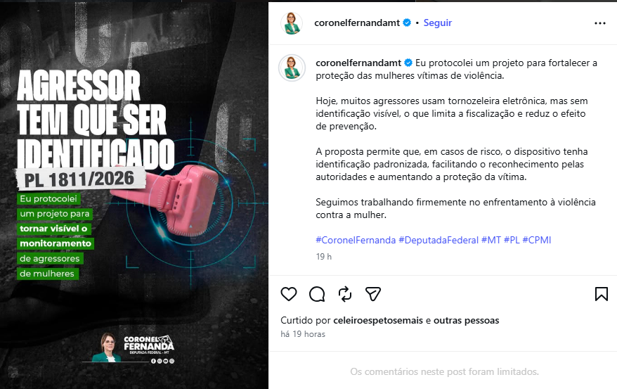 Projeto de Lei da Coronel Fernanda (PL) busca padronizar a identificação visual de infratores monitorados; proposta defende maior prevenção e fiscalização.