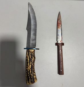 Militares apreenderam uma faca e um punhal utilizadas no crime; uma continha marcas de sangue