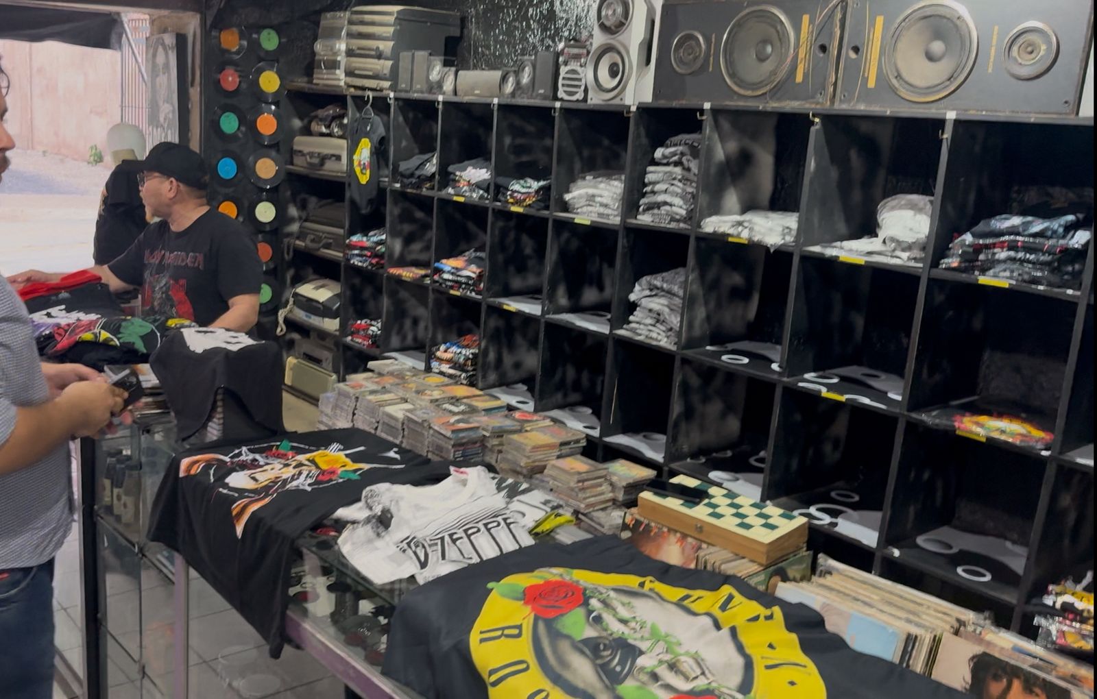 Na rua Joaquim Murtinho, no Centro de Cuiabá, a loja Rock & Cia, que há mais de 20 anos é referência entre os fãs de rock, viu as prateleiras esvaziarem rapidamente. O proprietário Jorge Brito contou que o estoque de camisetas da banda começou a desaparecer logo após o anúncio do show. As peças, que variam entre R$ 80 e R$ 100, se tornaram os itens mais procurados pelos fãs.