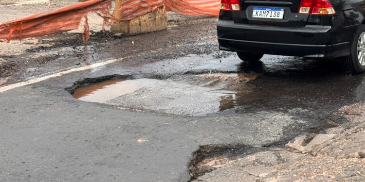Um buraco na Avenida Miguel Sutil tem ampliado transtornos e colocado motoristas em risco em um trecho já tumultuado pelas obras do Complexo Leblon, em Cuiabá. A situação foi denunciada por uma ouvinte e acompanhada pela equipe do Jornal da Capital 101.9 FM na manhã desta segunda-feira (17).